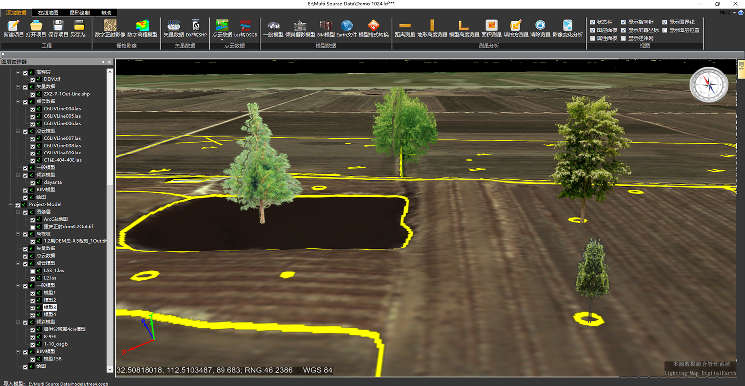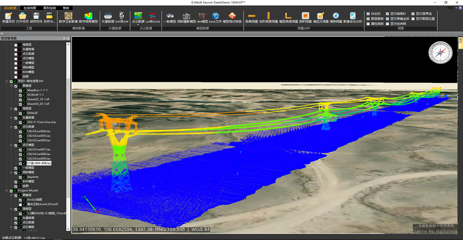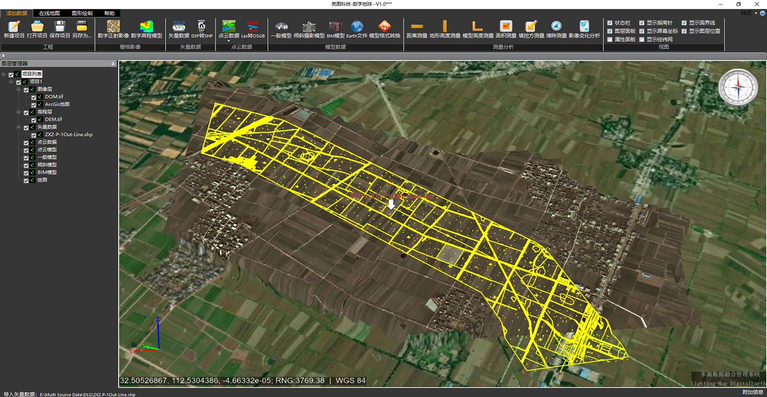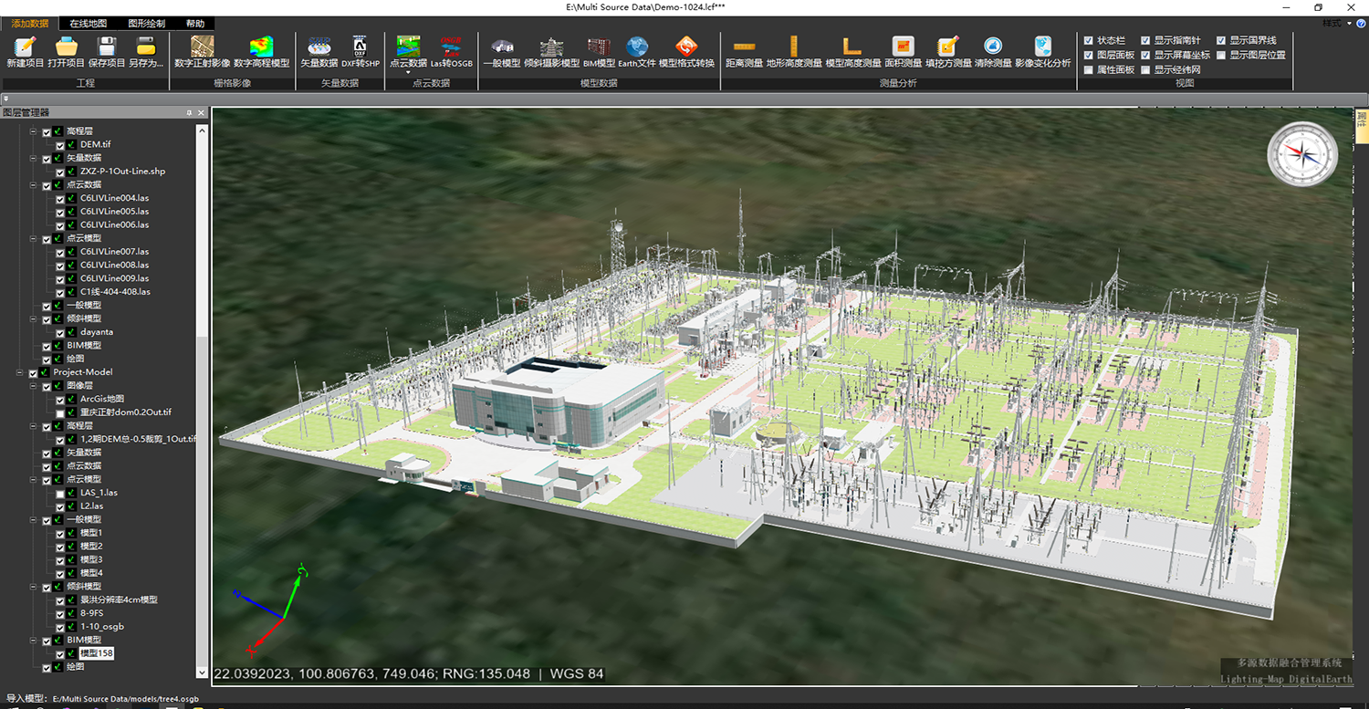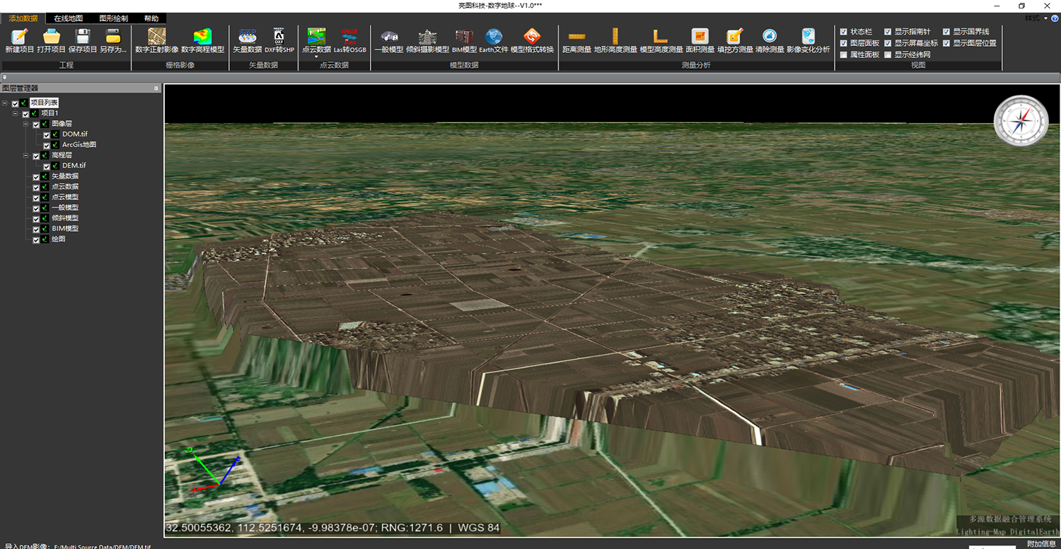 多源数据融合管理平台是公司研发的C/S架构三维GIS平台,融合数字地球、绘图引擎、GDAL/OGR数据驱动库、Proj4地图投影库、Curl文件传输库、Geos拓扑操作库、SQLite开源数据库等多种开源库,可集成DOM、DEM、DLG、BIM及倾斜摄影模型等各类影像、矢量数据以及点云数据等多源异构数据,以统一的空间参考基准,实现多源数据的深度融合,集成度高,具有实时地形渲染、坐标投影转换、矢量/影像/网络地图服务、GIS空间分析等多种功能,具备极高的可扩展性,为实景三维建设提供了一个开放性的平台,可广泛应用于测绘、国土、水文、水利、环保、公安、消防、高校等领域。