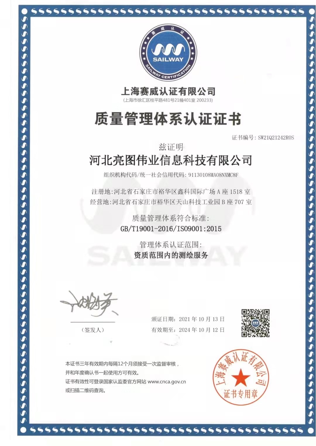河北亮图伟业信息科技有限公司是一家地理信息科技型企业,公司于2017年6月在石家庄正式注册成立,注册资金1000万,公司具备测绘乙级资质,是国家高新企业、河北省地理信息产业协会理事单位,是ISO体系认证企业。公司团队以多年深耕地理信息行业应用的经验为基础,以更专业、更全面的视角,为各行业用户提供优质的地理信息技术深度服务及解决方案,自主研发了一系列软件产品,获得国家专利和国家软件著作权多项。
