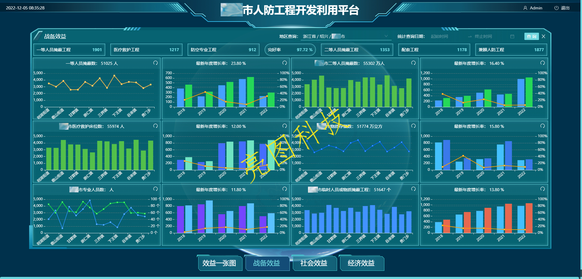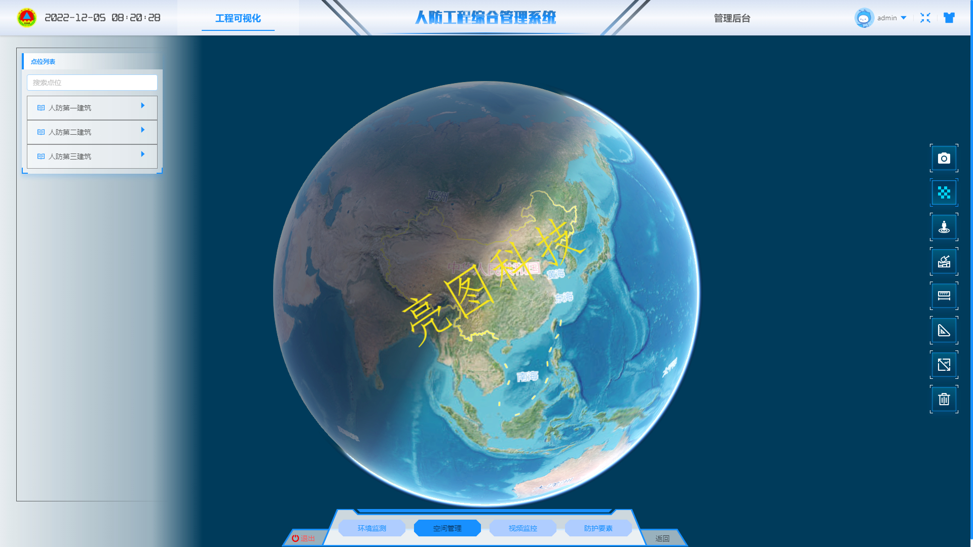 但是目前的人防工程管理缺乏有效的工程管理综合平台,在实践中仍存在以下问题:1.各管理部门之间相互隔离和脱节,导致管理效率低;2.不同级别的人防工程管理单位之间缺乏信息交流;3.缺乏对人防工程内的防护设施的安全性进行检测,进而无法为人防工程的建设提供科学的数据依据,由于以上问题的存在,导致人防工程的管理效率低以及人防工程的防御能力和安全能力差,为了避免以上问题,现设计一种人防工程信息综合管理系统。